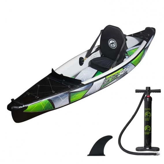 Hochwertiges Allround Schlauchboot Kajak Set der neuesten Technologie mit viel Zubehör (Sitz, Pumpe, Transporttasche mit Rollen)